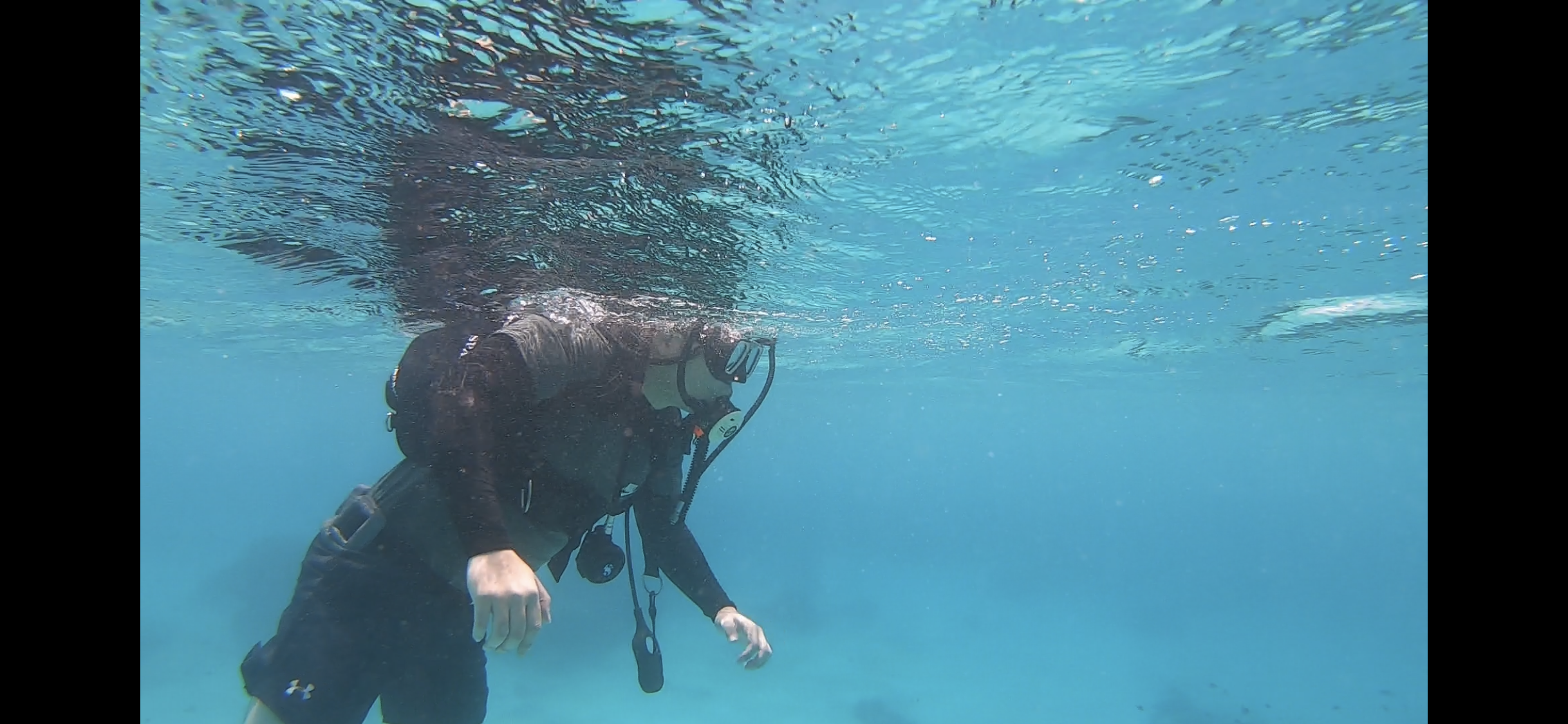 산소통을 매고 맑은 물속으로 내려가야 했지만,