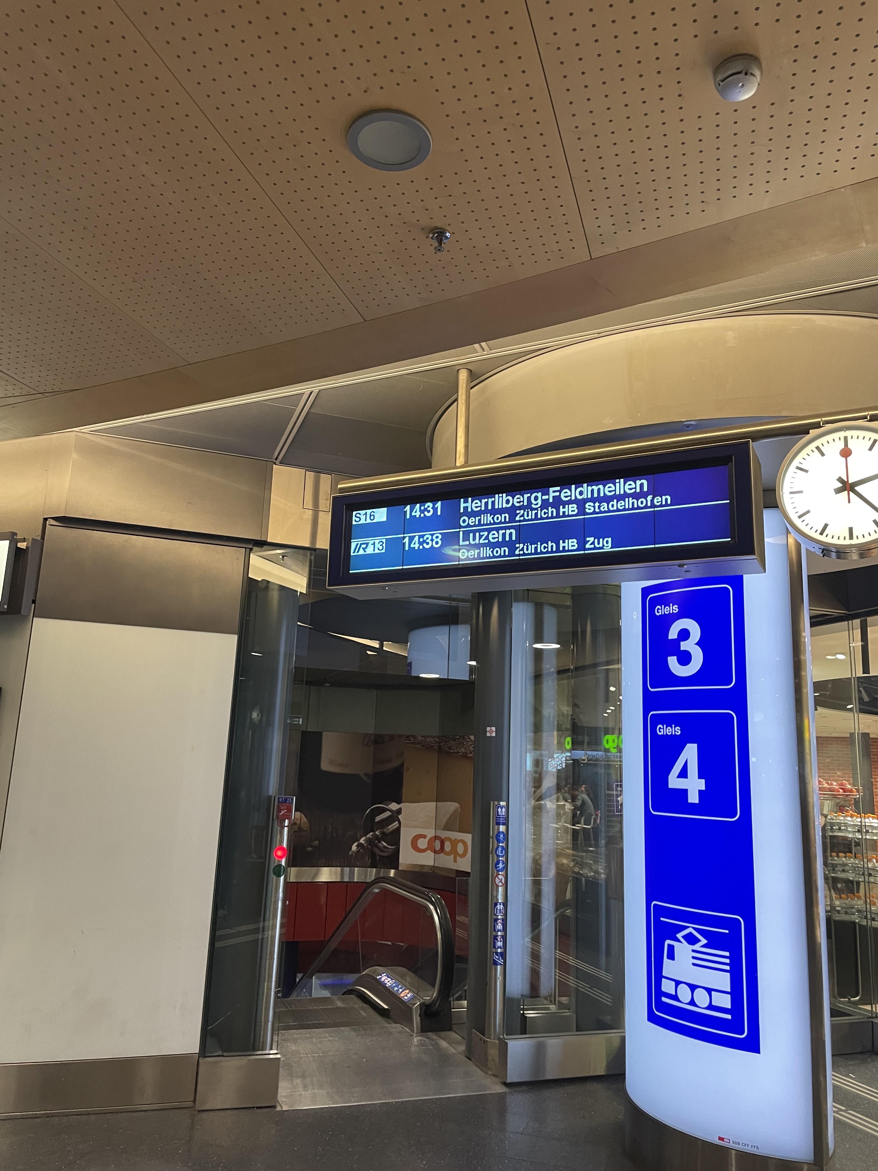 취리히 공항을 나오자마자 Airport Shopping을 찾아 들어가서 한층만 내려가면 기차 타는 곳을 쉽게 찾을 수 있다.